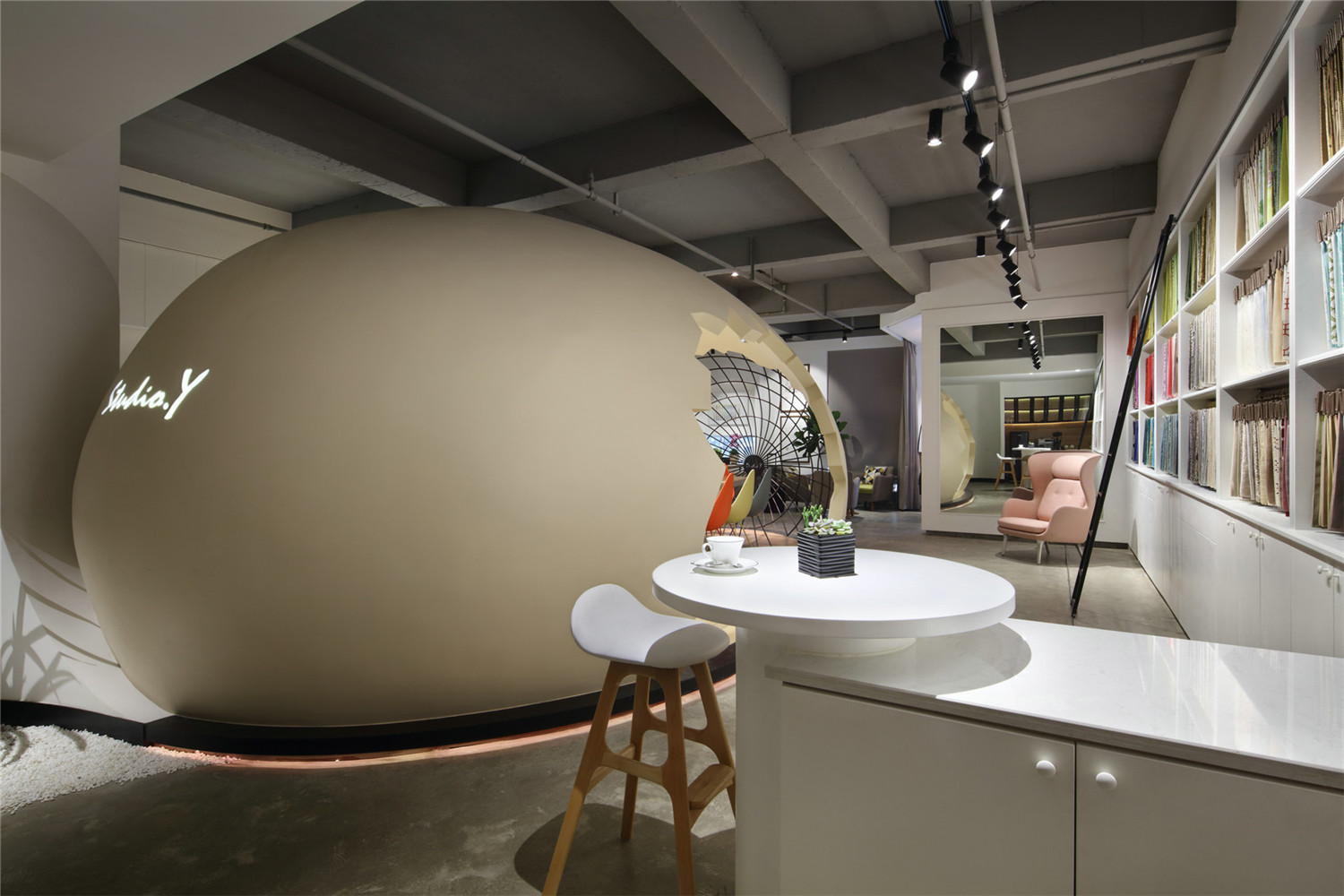 它不僅僅是一顆蛋!樣品展示區(qū)也可作為休閑空間使用。